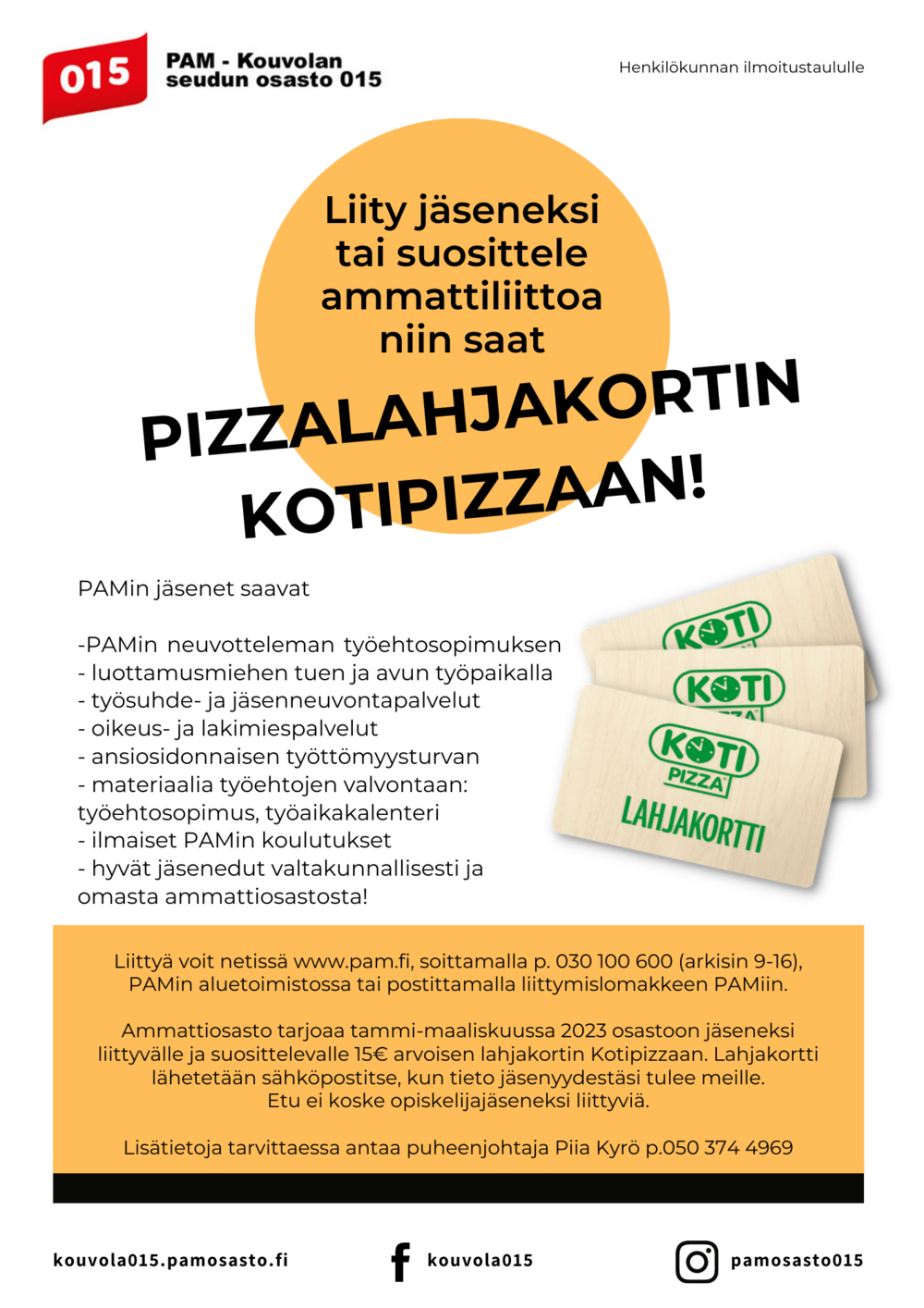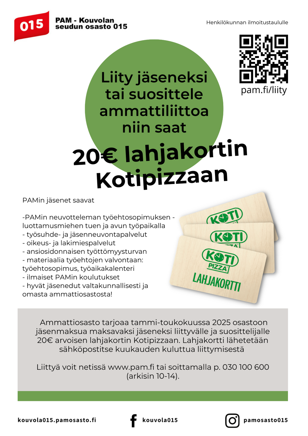 Jäsenhankinta- ja liittymiskampanja - 20€ lahjakortti Kotipizzaan